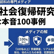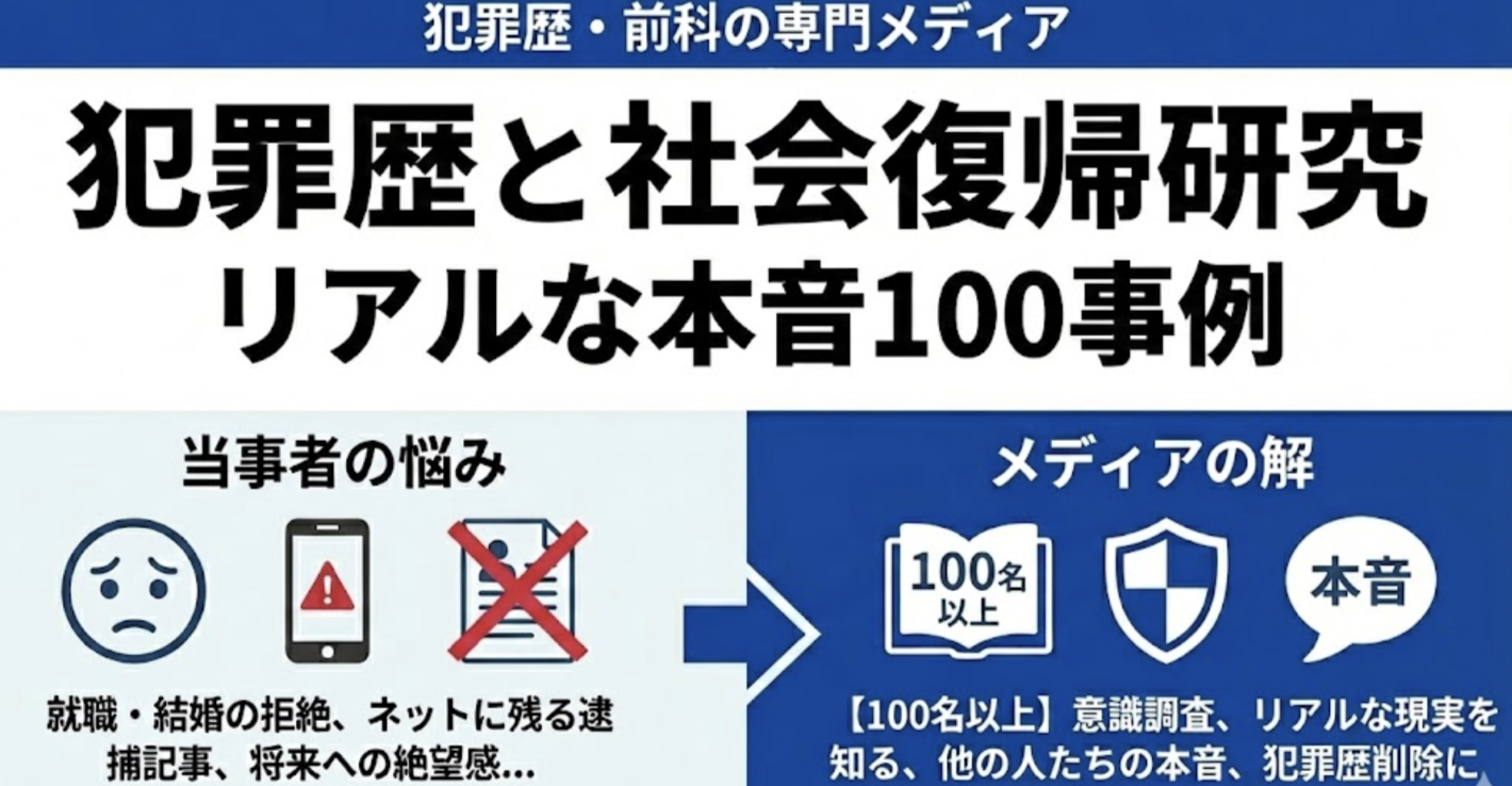 このサイト「犯罪歴と社会復帰研究 リアルな本音100事例」は、そんな当事者の方々に向けて、社会の本音を知り、再出発のヒントを得ていただくために立ち上げました。