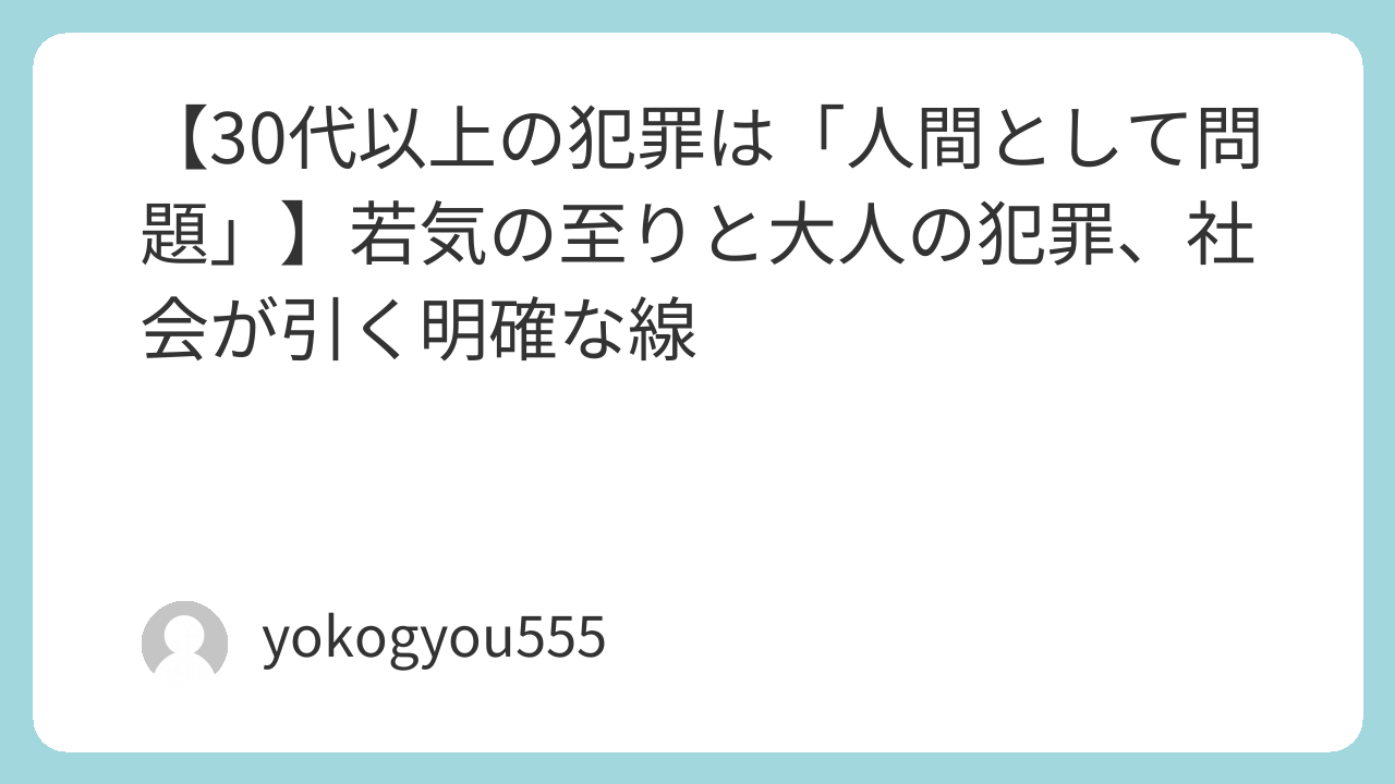 【30代以上の犯罪は「人間として問題」】若気の至りと大人の犯罪、社会が引く明確な線
