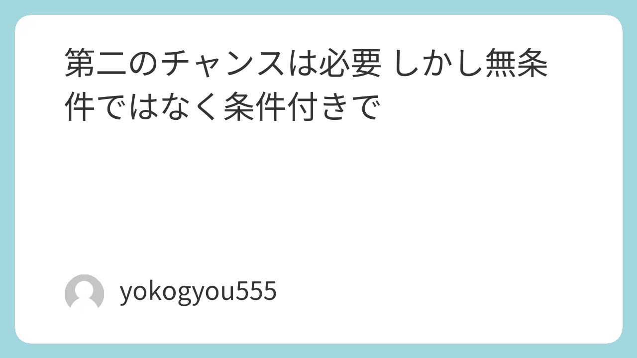 第二のチャンスは必要 しかし無条件ではなく条件付きで
