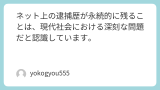 ネット上に情報が永久に残り続けることは、社会復帰の大きな障害になります。包摂の観点からは、一定期間後に削除されるべきだと思います。過去の過ちを一生背負わせることは、社会復帰を阻害し、結果的に再犯のリスクを高めることになります。寛容で包摂的な社会を目指すためにも、適切な時期に削除される仕組みが必要だと考えます。