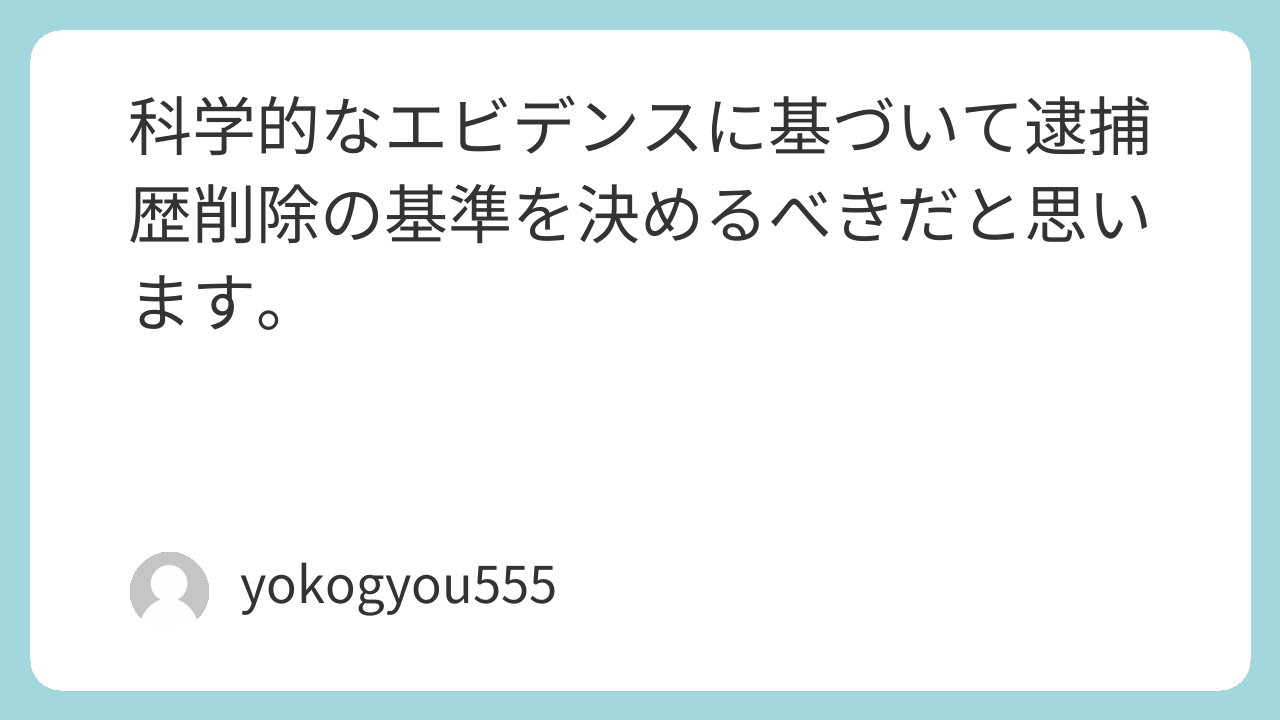 科学的なエビデンスに基づいて逮捕歴削除の基準を決めるべきだと思います。