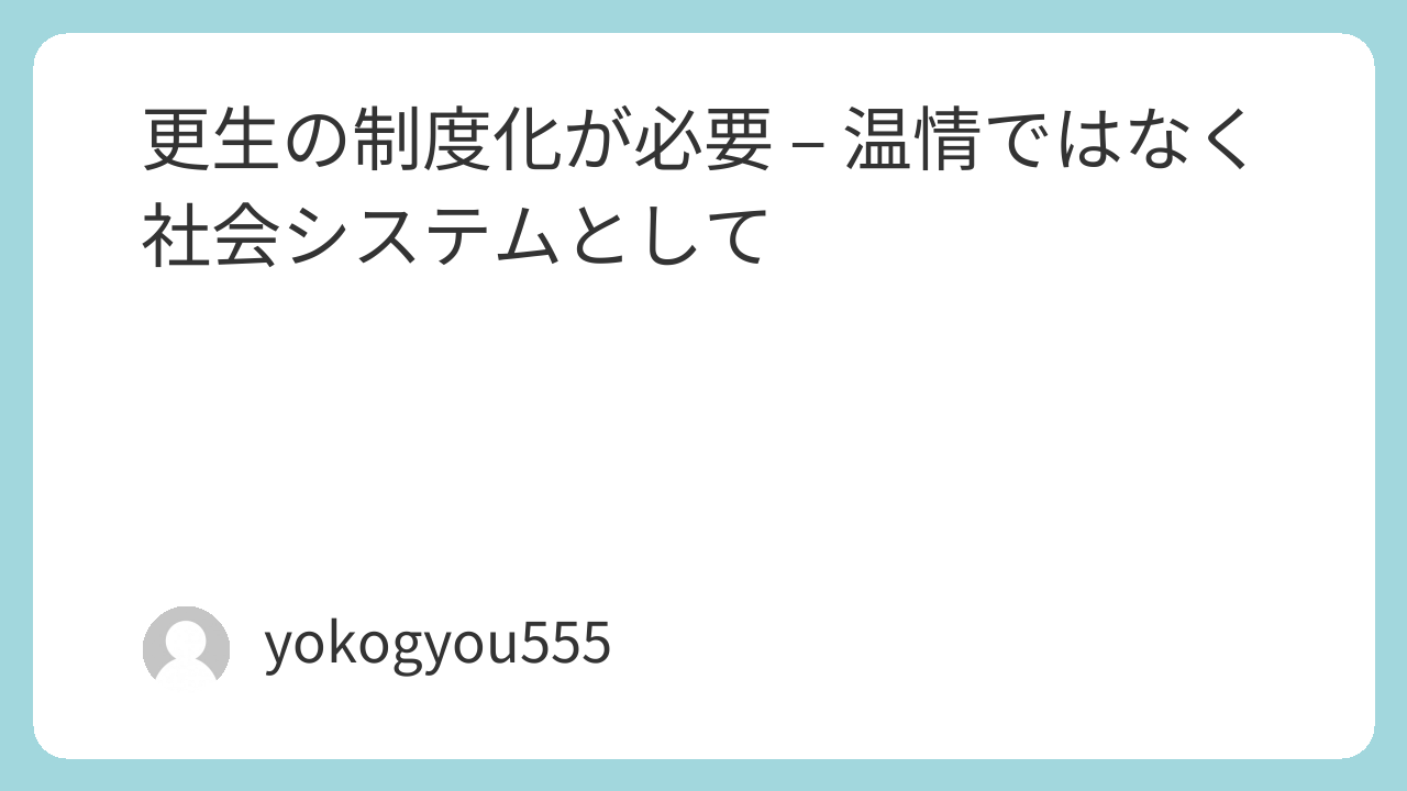 更生の制度化が必要 – 温情ではなく社会システムとして