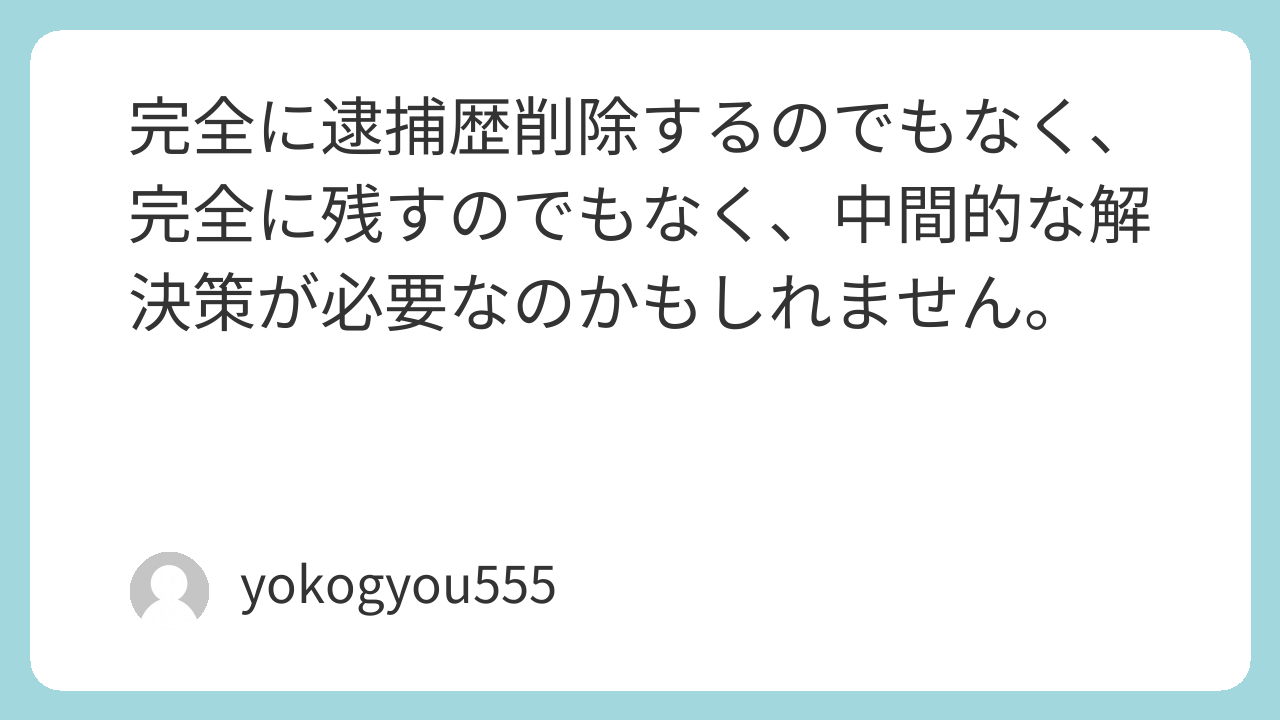 完全に逮捕歴削除するのでもなく、完全に残すのでもなく、中間的な解決策が必要なのかもしれません。