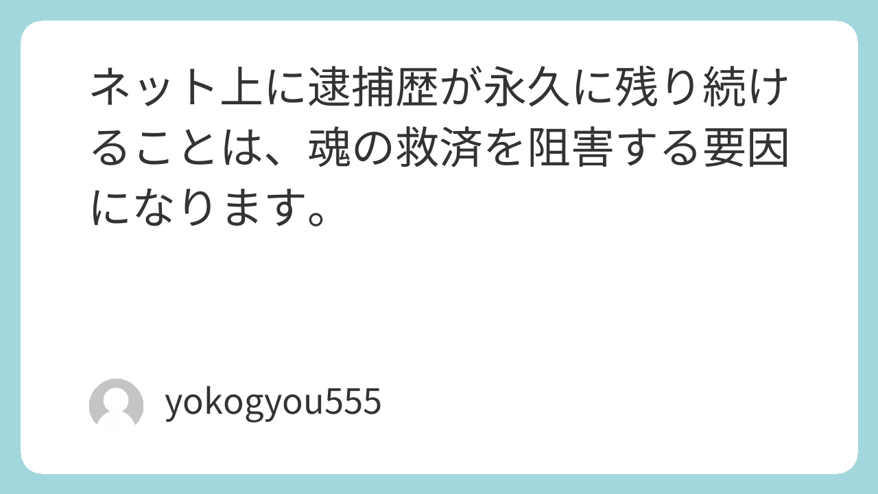 ネット上に逮捕歴が永久に残り続けることは、魂の救済を阻害する要因になります。