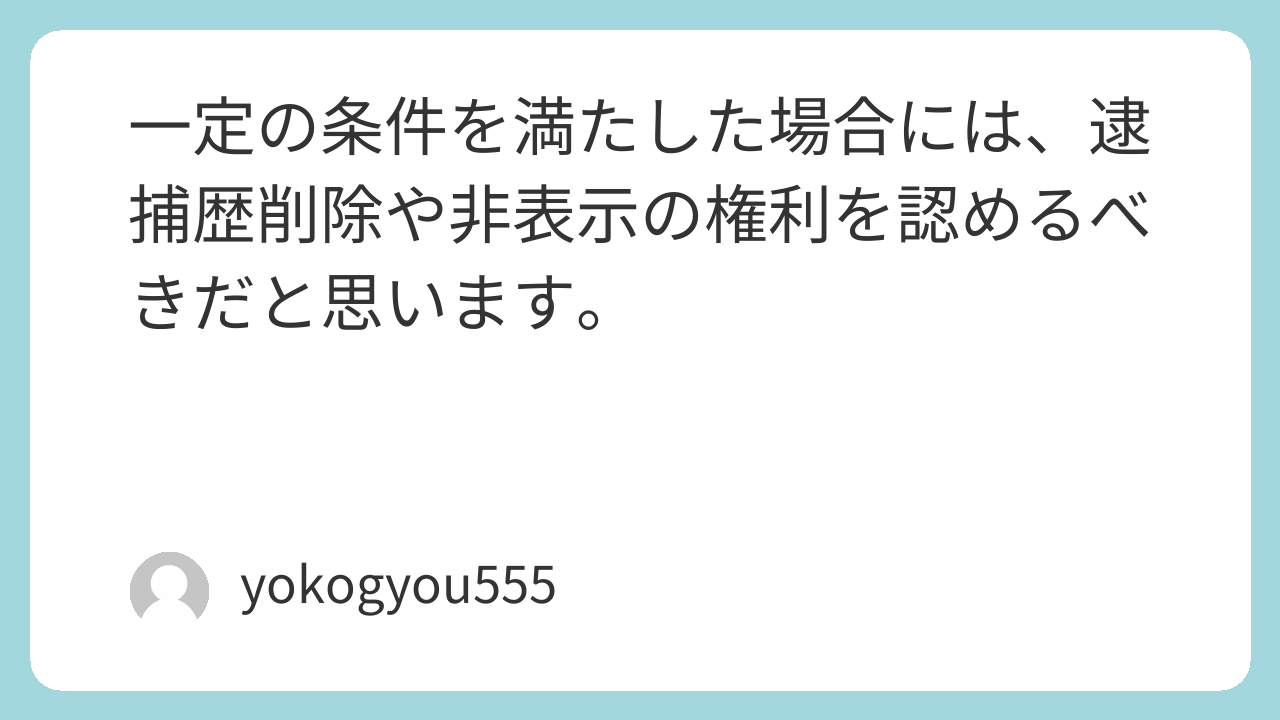 一定の条件を満たした場合には、逮捕歴削除や非表示の権利を認めるべきだと思います。