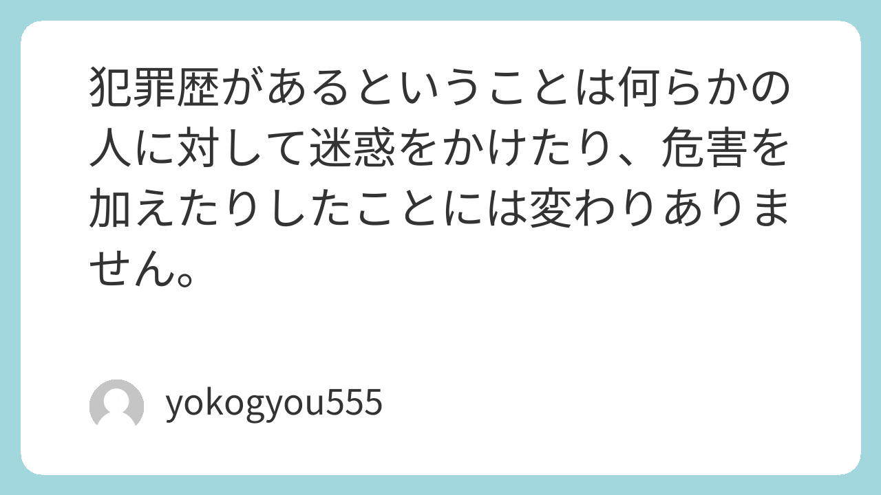 犯罪歴があるということは何らかの人に対して迷惑をかけたり、危害を加えたりしたことには変わりありません。