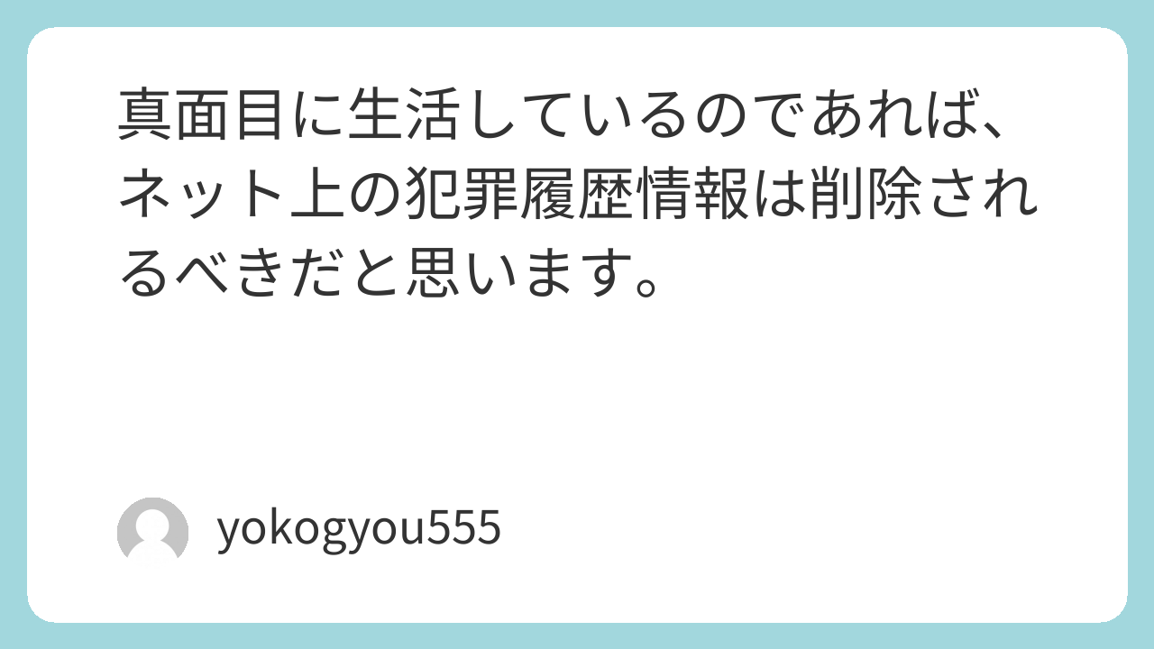 真面目に生活しているのであれば、ネット上の犯罪履歴情報は削除されるべきだと思います。