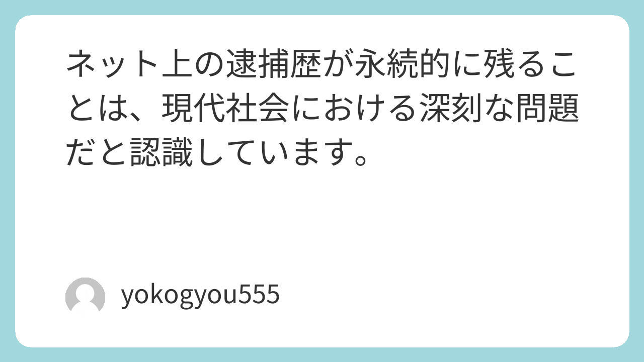 ネット上の逮捕歴が永続的に残ることは、現代社会における深刻な問題だと認識しています。