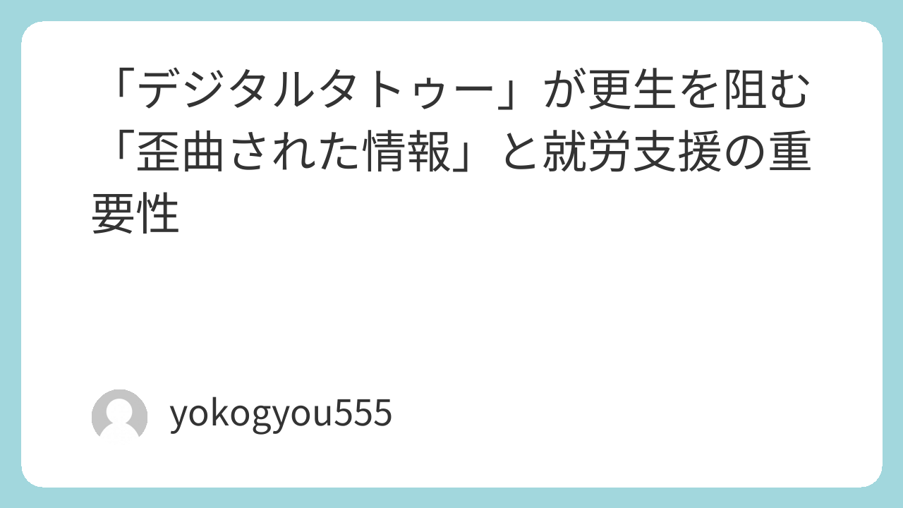 「デジタルタトゥー」が更生を阻む「歪曲された情報」と就労支援の重要性