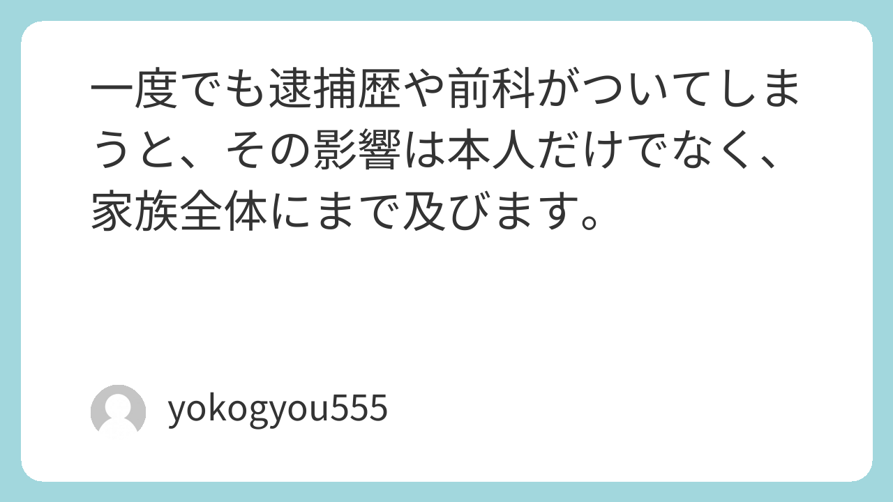 一度でも逮捕歴や前科がついてしまうと、その影響は本人だけでなく、家族全体にまで及びます。